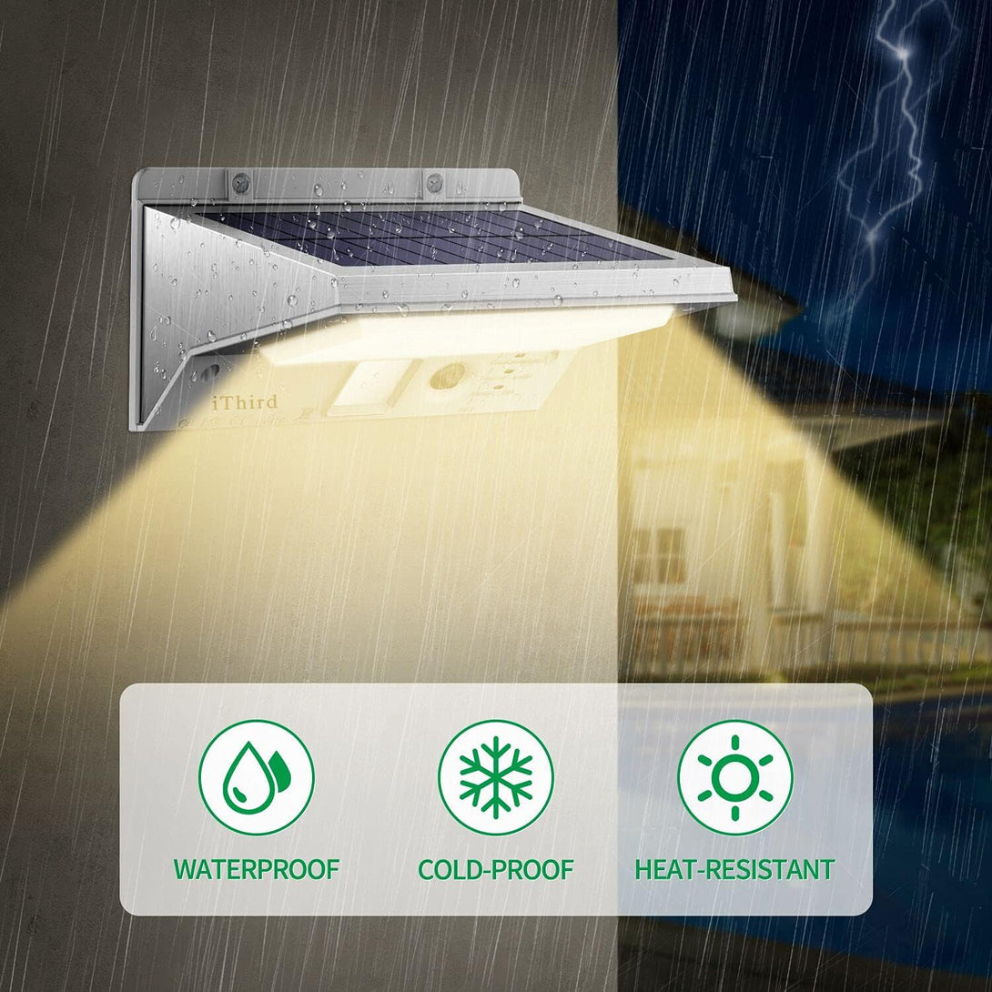 iThird Solar Motion Sensor Light Outdoor, LED Solar Powered Outdoor Lights Solar Security Lights Stainless Steel for Yard Patio Garage Waterproof Motion Detector Flood Light Super Bright(Warm White)