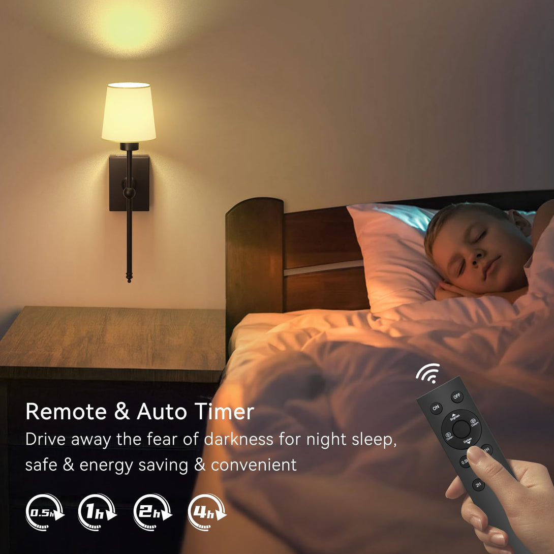 【Timer & Memory Function】You can set a timer for the battery-powered wall sconces to automatically turn off after 0.5/1/2/4 hours through the remote control, which helps to preserve battery life and reduce unnecessary power consumption. Our battery sconces remember your last setting(color temperature&brightness), when switched back on, it seamlessly resumes the mode you left it in, eliminating the need for repetitive adjustments and saving you precious time
